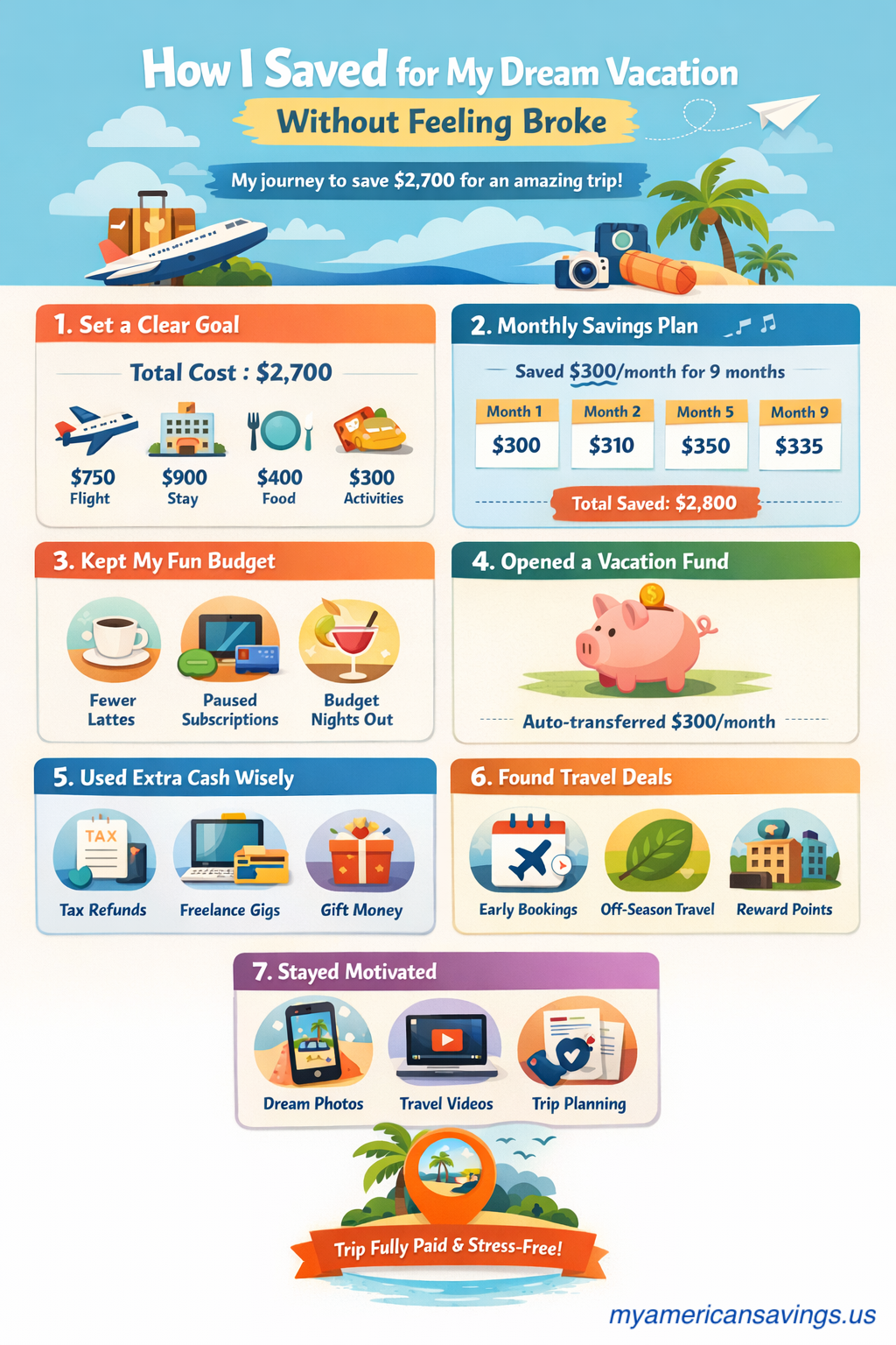 Meanwhile, a survey by Bankrate found that many Americans struggle to cover unexpected expenses, which made me realize something important: if I didn’t plan intentionally, my vacation would always feel “out of reach.”