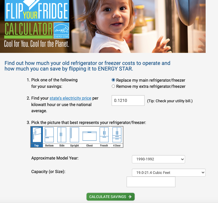 To see how your existing fridge stacks up, consider using the ENERGY STAR Flip Your Fridge Calculator.