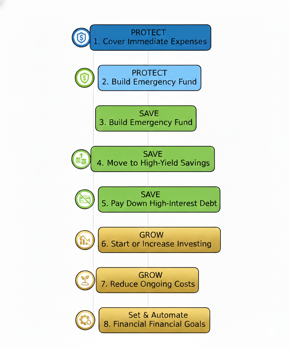 One of the most important next steps is to create or grow your emergency fund — a separate savings pool designed to cover unforeseen expenses like sudden medical bills, car repairs, or job loss. Financial advisors often recommend saving enough to cover three to six months of essential expenses.